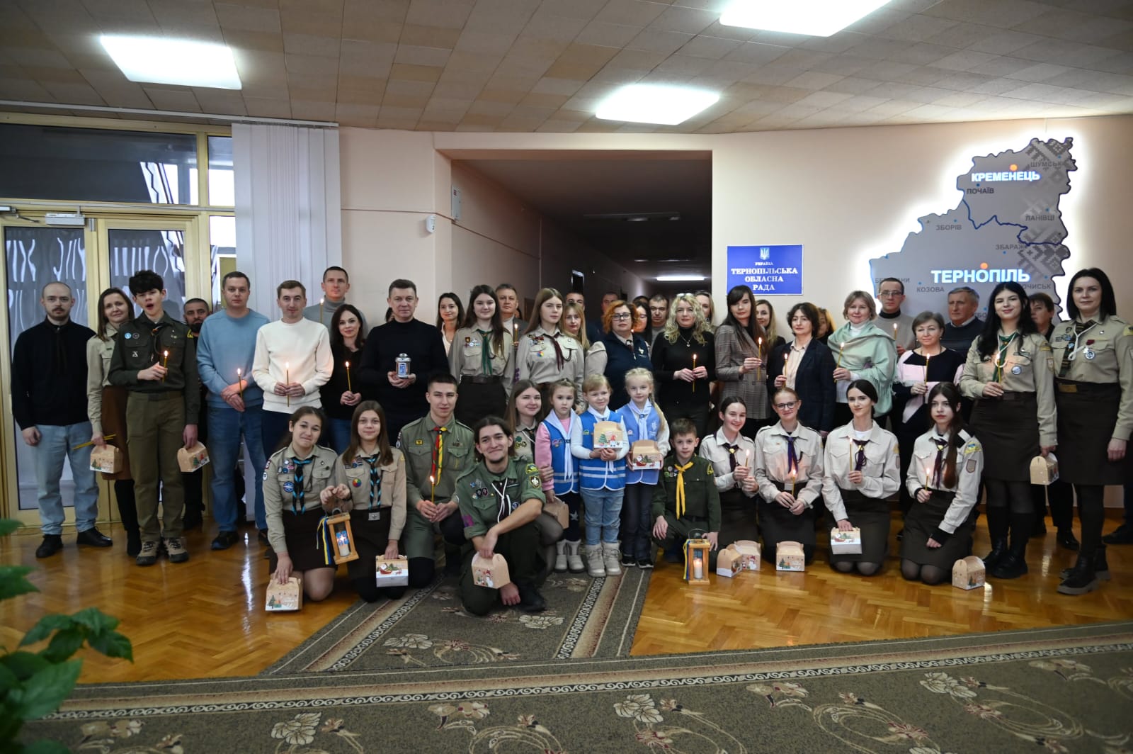Сьогодні представники Тернопільського осередку Національної скаутської організації «Пласт» урочисто передали Вифлеємський вогонь миру першому заступнику голови Тернопільської обласної ради Володимиру Болєщуку, працівникам виконавчого апарату та депутатам обласної ради.