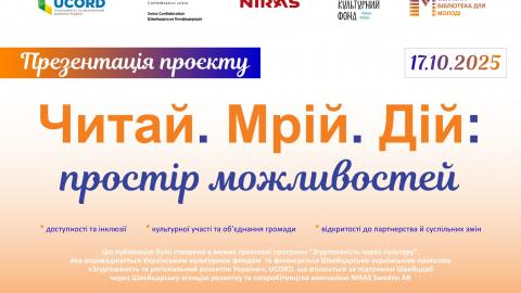 Тернопільська обласна бібліотека для молоді запрошує на презентацію проєкту «Читай. Мрій. Дій: простір можливостей»
