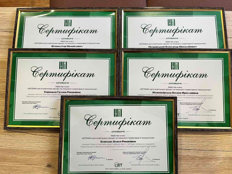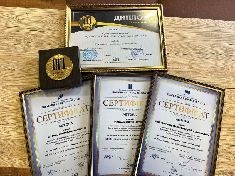 Адміністрація, науково-педагогічні та педагогічні працівники ТОКІППО нагороджені «Золотою медаллю» та двома дипломами за перемогу у конкурсі з тематичної номінації «Тернопільський обласний комунальний інститут післядипломної педагогічної освіти як драйвер STEM-інновацій: стратегії та результати формування освітнього середовища на Тернопільщині». Також автори та доповідачі нагороджені сертифікатами та подяками за активну діяльність із розбудови інноваційної діяльності закладу освіти.
