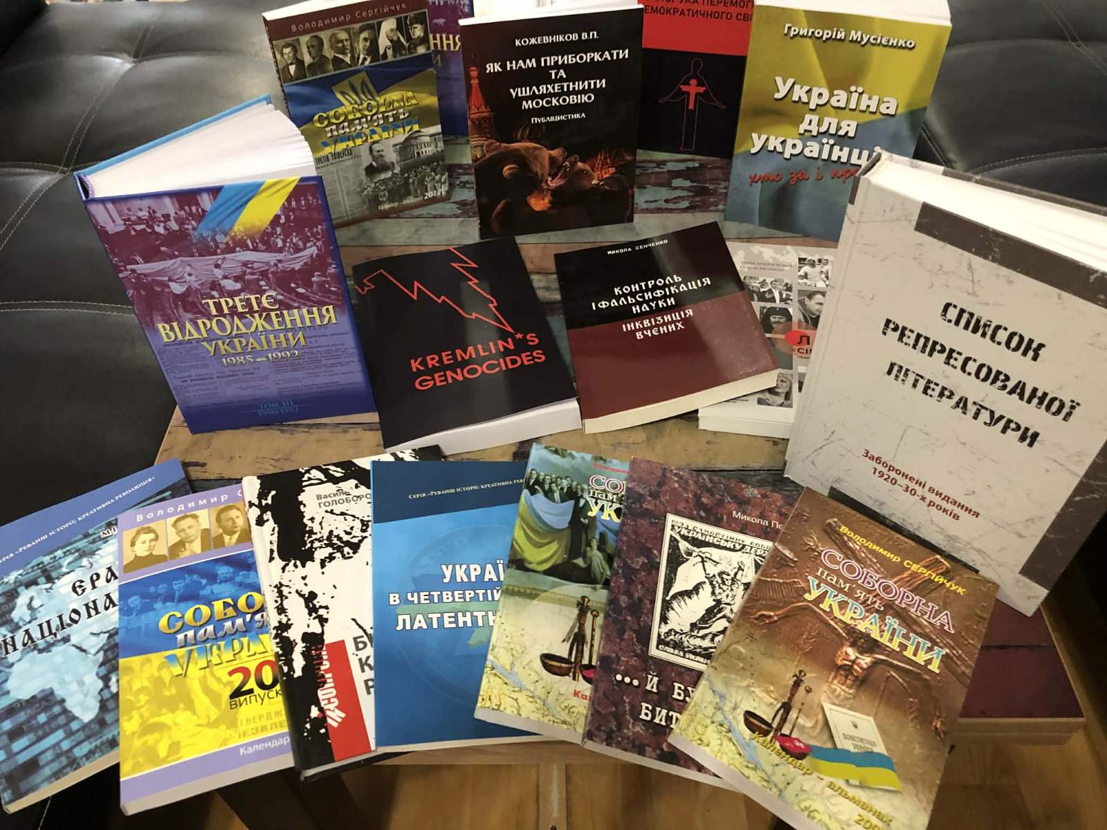 Серед одержаних книжок – «Третє відродження України. 1985-1992. Документи і матеріали в 3-х томах», «Війна за Україну : правда про Голодомор-геноцид українців: журналістське розслідування», «Правда про геноцид українців: запорука перемоги демократичного світу», «Ера націоналізму. Дійові особи: Націоналісти. Бюрократи. Олігархи» та «Україна в четвертій світовій латентній війні» М. І. Сенченка; календарі-альманахи «Соборна пам'ять України» В. Сергійчука, «Люди «сірої зони»: свідки російської анексії Криму 2014 року», «Список репресованої літератури: Заборонені видання 1920-30-х років» та інші.