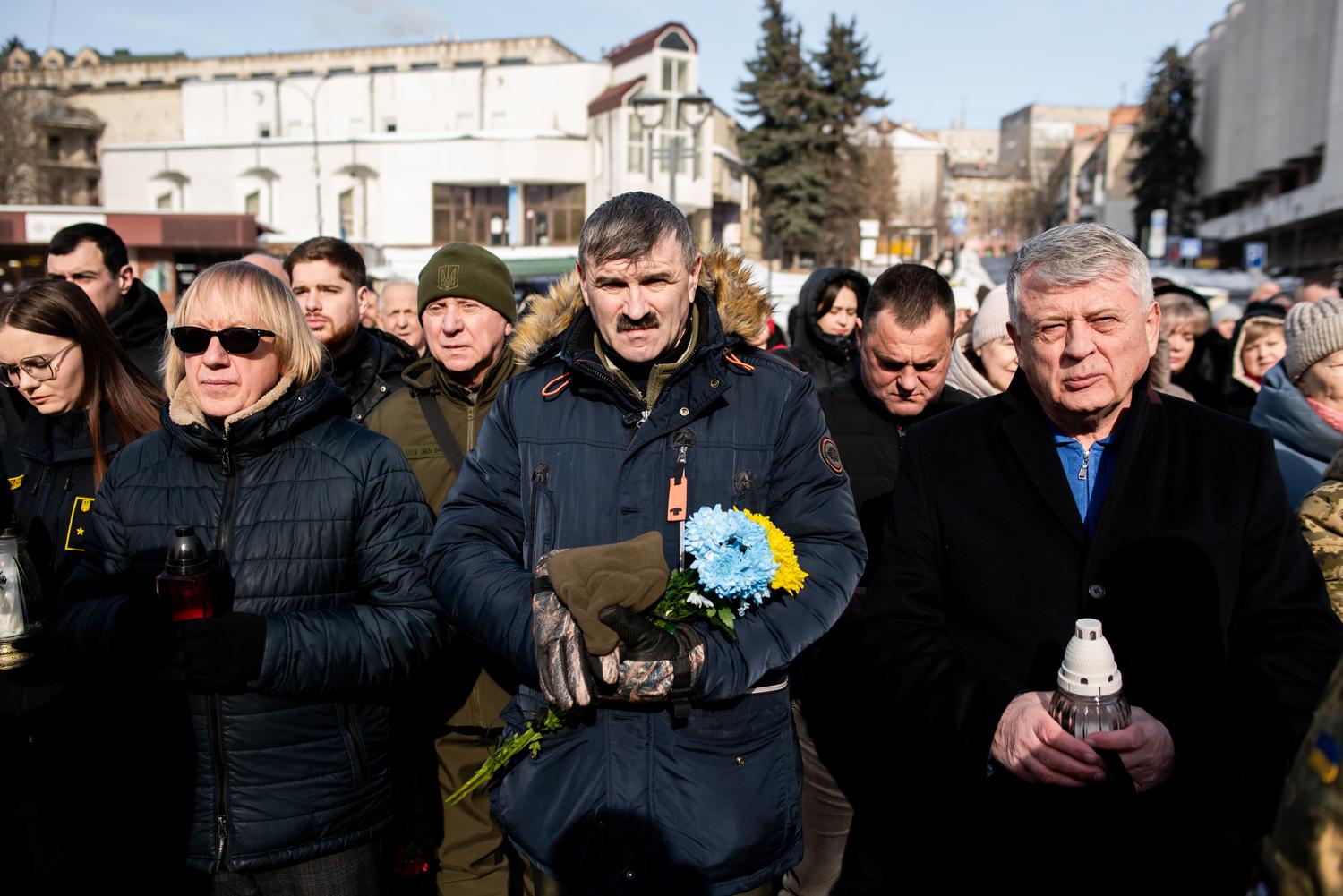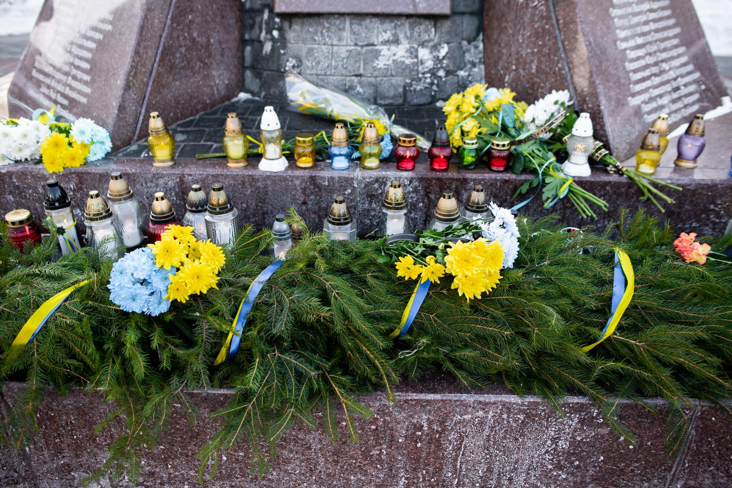 З повагою та вдячністю до підніжжя пам'ятника Героям Небесної Сотні поклали гірлянду пам'яті, квіти та запалили лампадки.