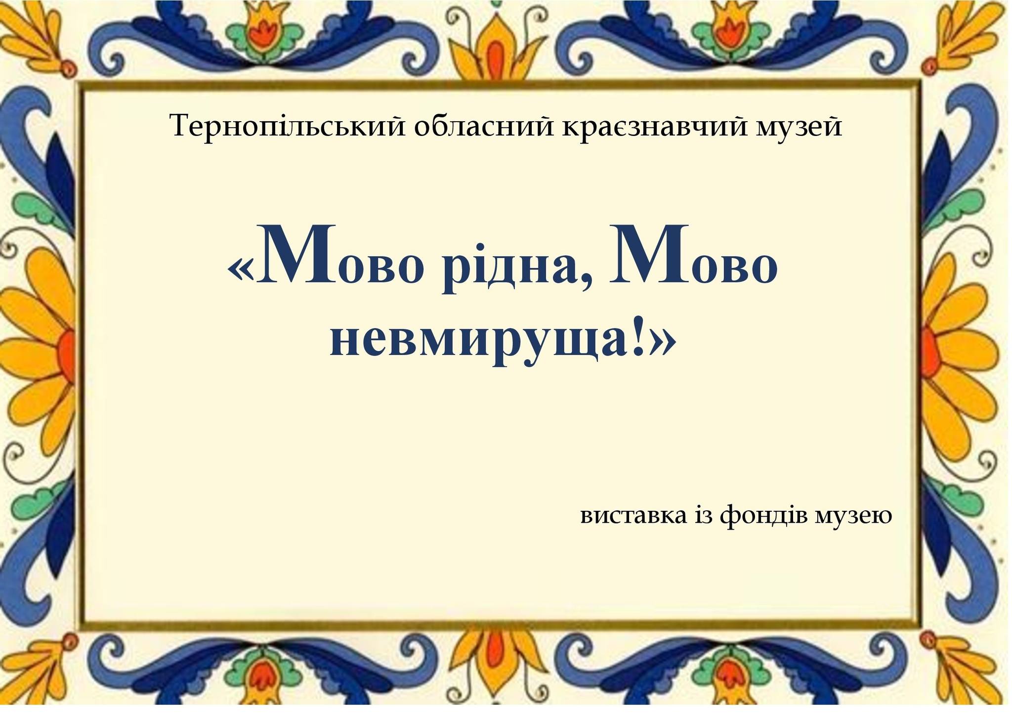 З нагоди Міжнародного дня рідної мови, який Україна відзначила разом з усім світом 21 лютого, у Тернопільському обласному краєзнавчому музеї експонується тематична виставка «Мова рідна, мово невмируща!», яка знайомить відвідувачів із багатством українського слова та мовною спадщиною нашого краю.