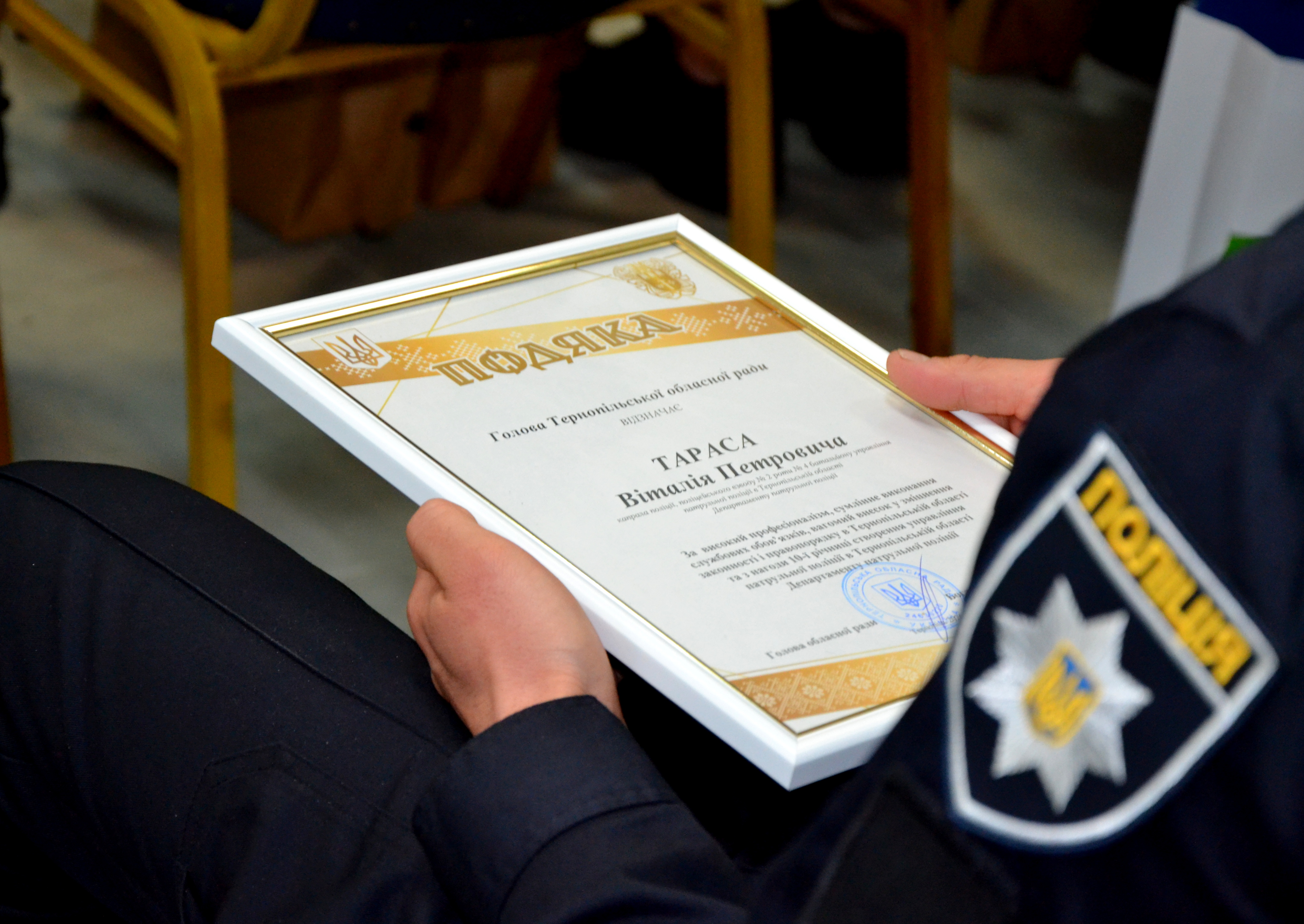 З нагоди ювілею заступник голови Тернопільської обласної ради Ігор Сопель відзначив кращих поліцейських управління патрульної поліції Тернопільської області Департаменту патрульної поліції подяками та цінними подарунками Тернопільської обласної ради.