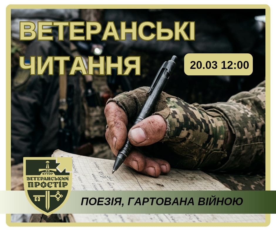 У читаннях візьмуть участь ветерани, матері Захисників та фахівці ветеранського простору. Учасники представлять власні поетичні тексти та коротку прозу.
