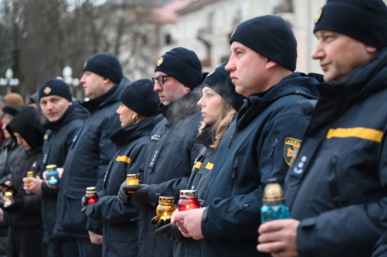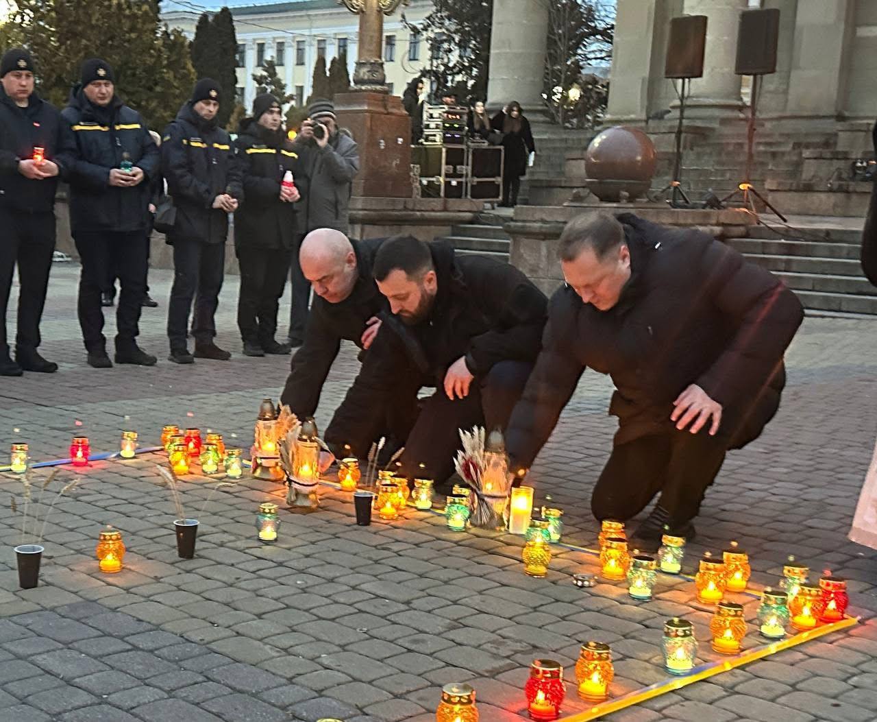 Запалили лампадки і свічки у символічному хресті скорботи.